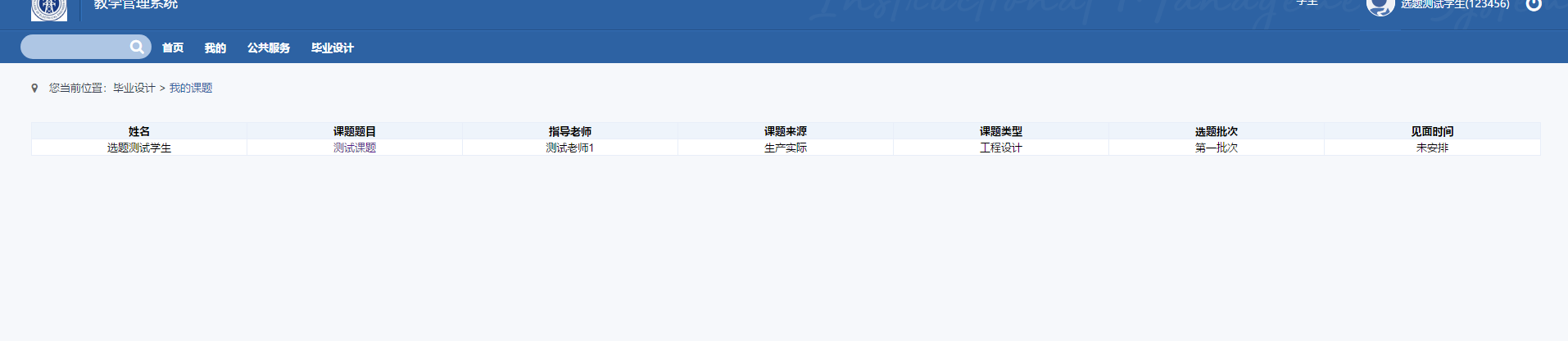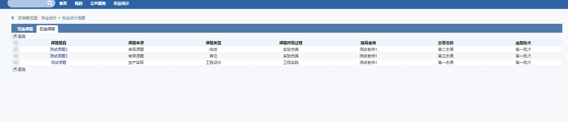 学生可在已选课题,以及我的课题查询自己的课题。